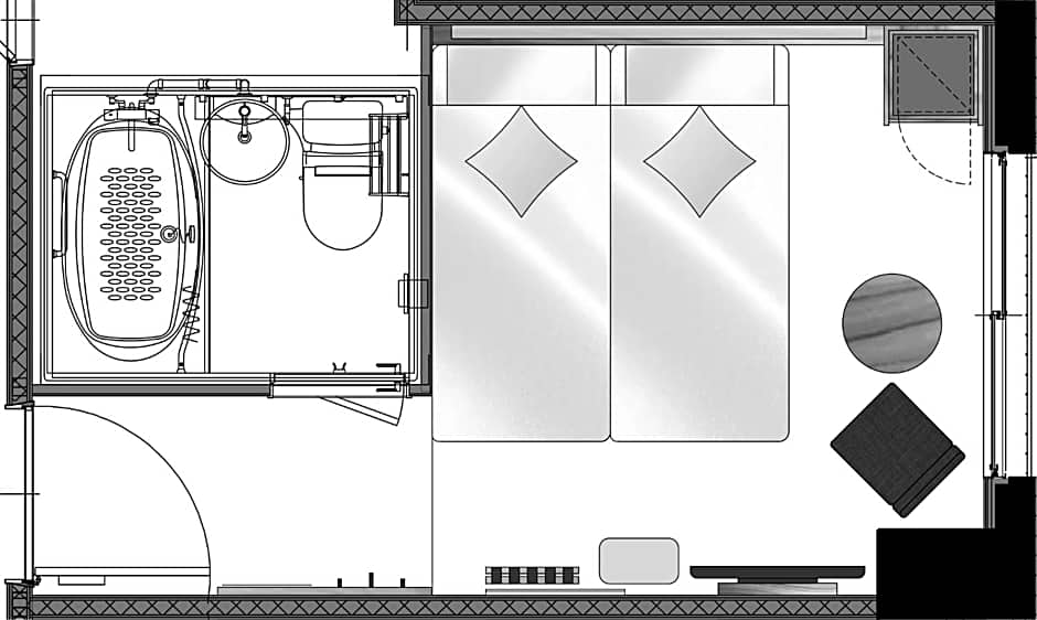 The twin room includes a private bathroom, well-fitted with a bath, a shower, a bidet, a hairdryer and slippers. The twin room provides air conditioning, soundproof walls, an electric kettle, a carpeted floor and a flat-screen TV with cable channels. The unit offers 2 beds.